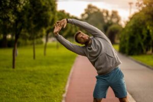 Stretching is a wonderful way to start your home fitness routine. It wakes up your muscles, makes them more flexible, and prepares your body for the upcoming movements. Raising your arms overhead, touching your toes, or gently rotating your torso can help relieve tension and stiffness from prolonged sitting. Stretching also helps prevent injuries by warming up your muscles and joints. Stretching is a good starting point for fitness beginners because it’s easy to do and can boost their confidence.